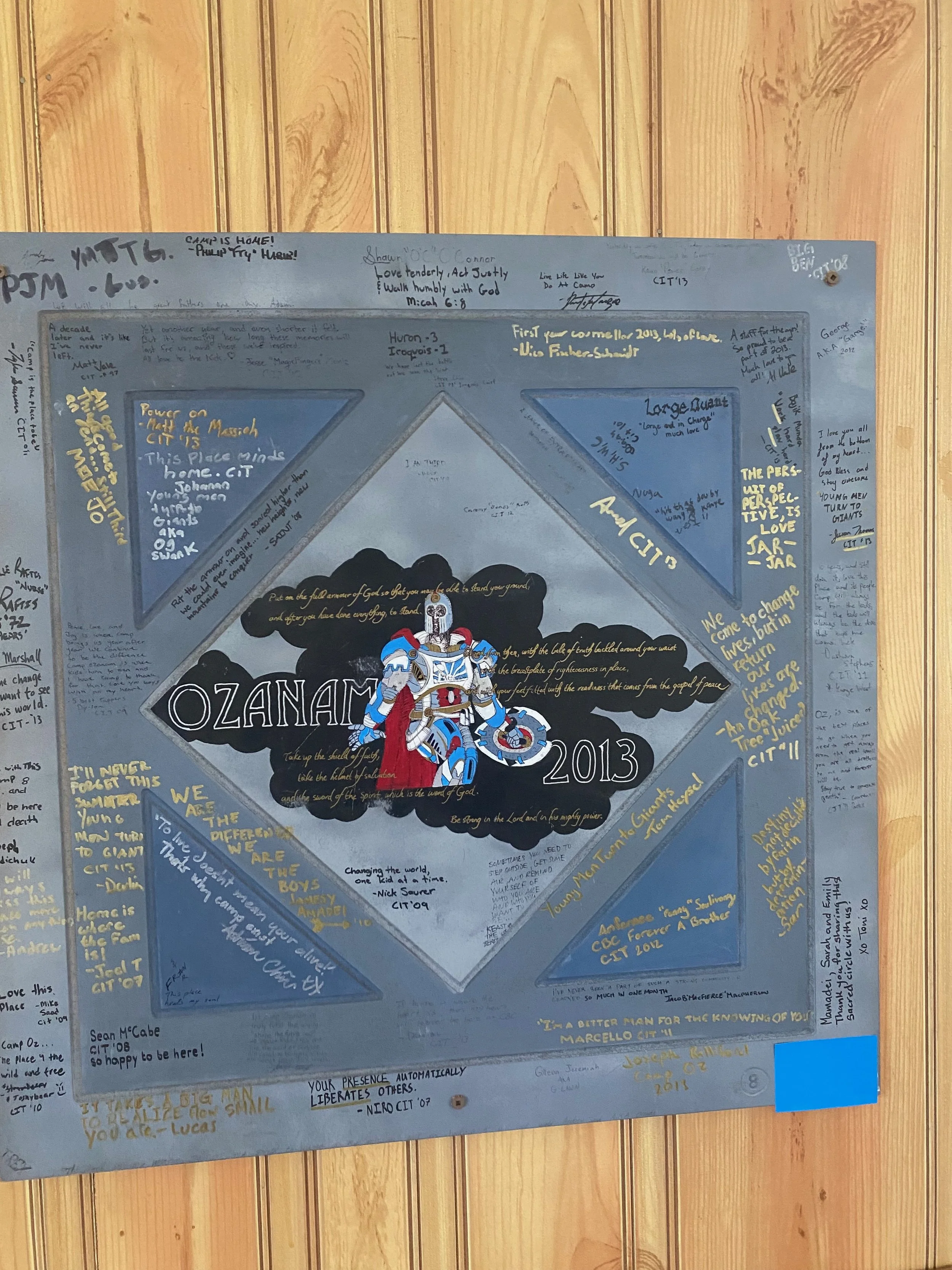 The staff plaques do something similar, thye’re hung up in our Kiva. They're signed with inside jokes and half-remembered song lyrics and the kind of shorthand that only makes sense to the people who were there. They are dispatches from summers past, sent by people who wanted to leave something of themselves behind. Reading them, you understand: this place mattered to people before me. It will matter to people after me. My job this summer is to add to it.